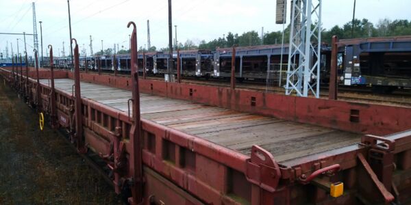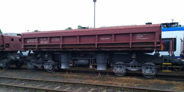 Drehgestell-Flachwagen mit Seitenborden